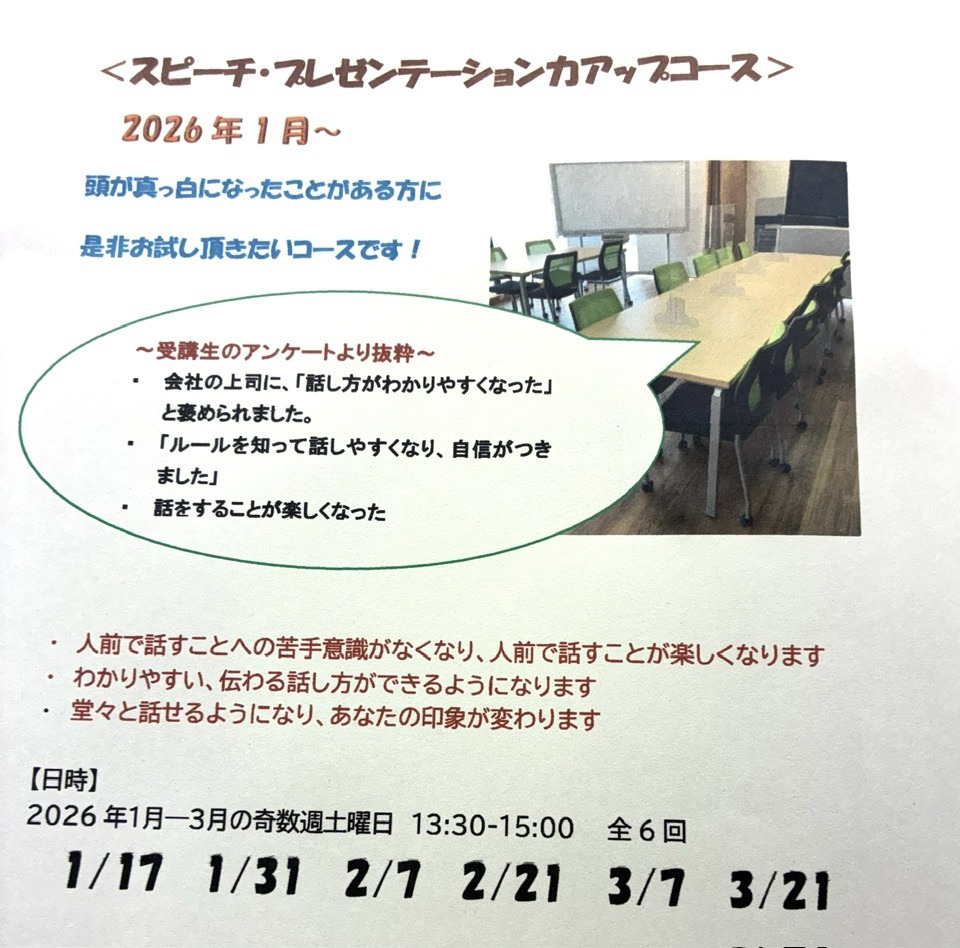 🎤スピーチ・プレゼンテーション力アップコース2026